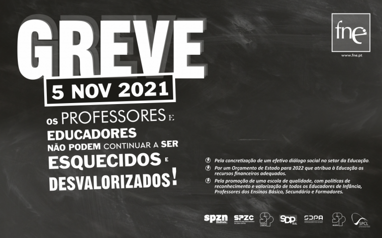 Por todas estas razões, a FNE avança com o Pré-Aviso a convocar uma greve nacional de Docentes em funções públicas, representados pelos seus sindicatos, a realizar entre as zero horas e as 24 horas do dia 5 de novembro de 2021.