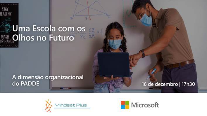 A Microsoft em parceria com a MindsetPlus, no âmbito das ações de apoio às Escolas na implementação do Plano de Ação Desenvolvimento Digital das Escolas (PADDE), lançou a iniciativa “Uma Escola com os Olhos no Futuro”, destinada às Direções dos CFAE, Embaixadores e Equipas Digitais de todo o País.