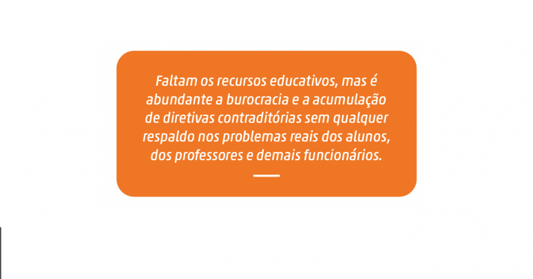 No geral, as escolas públicas foram transformadas numa espécie de “feudos senhoriais”, como se fossem propriedade privada; o Poder foi centralizado, as decisões são tomadas unipessoalmente, quase sempre de forma inflexível e arrogante; a doutrinação e o culto à personalidade do “líder supremo” são frequentes, podendo chegar-se ao ridículo da existência de rituais a lembrar o “Beija-Mão” de outras épocas…
