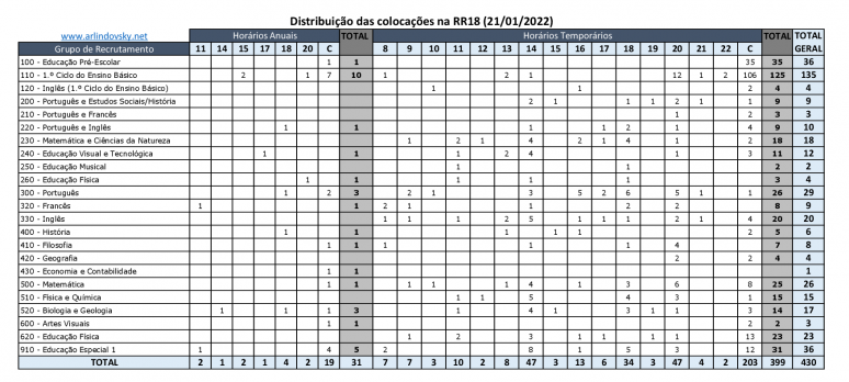 Lista Colorida com colocados e retirados da RR18, numa altura em que 6 professores estão no seu 4º contrato!