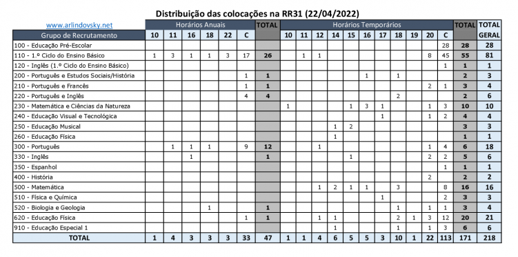 Publicitação das listas definitivas de Colocação, Não Colocação, Retirados e Listas de Colocação Administrativa – 31.ª Reserva de Recrutamento 2021/2022.