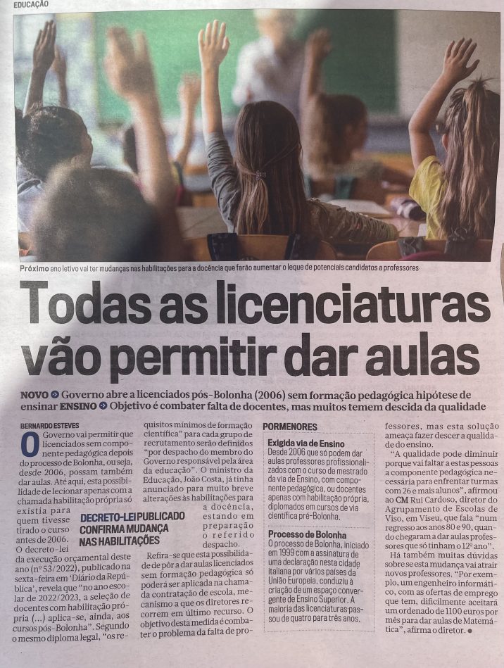 Por essa razão foi anunciada uma revisão das habilitações para a docência. Essa revisão trará de volta às escolas “professores” sem componente pedagógica no currículo das suas licenciaturas ou mestrados que, depois, poderá ser, ou não, realizada através da profissionalização em serviço.