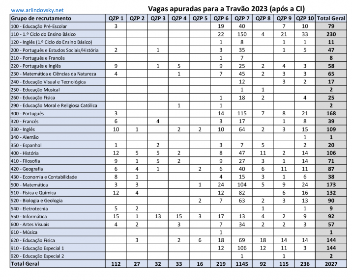 Após a saída das colocações na CI, foi possível apurar 2027 vagas para a Norma Travão do próximo ano. Este número deverá ser maior se considerarmos os temporários equiparados a anual dos anos anteriores e as colocações das próximas reservas de recrutamento.
