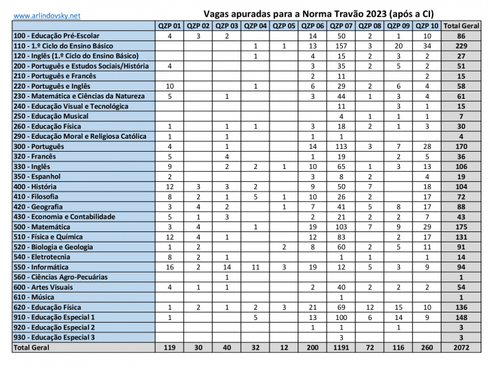 Após a saída das colocações na CI, foi possível apurar 2072 vagas para a Norma Travão do próximo ano. Este número deverá ser maior se considerarmos os temporários equiparados a anual dos anos anteriores e as colocações das próximas reservas de recrutamento.