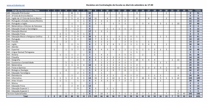 São 1.091 horários que se encontram na plataforma de contratação de escola, hoje às 17:00.