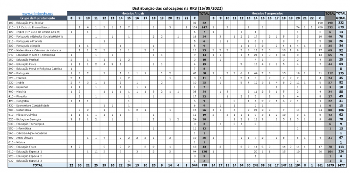 Publicitação das listas definitivas de Colocação, Não Colocação, Retirados e Listas de Colocação Administrativa – 3.ª Reserva de Recrutamento 2022/2023.