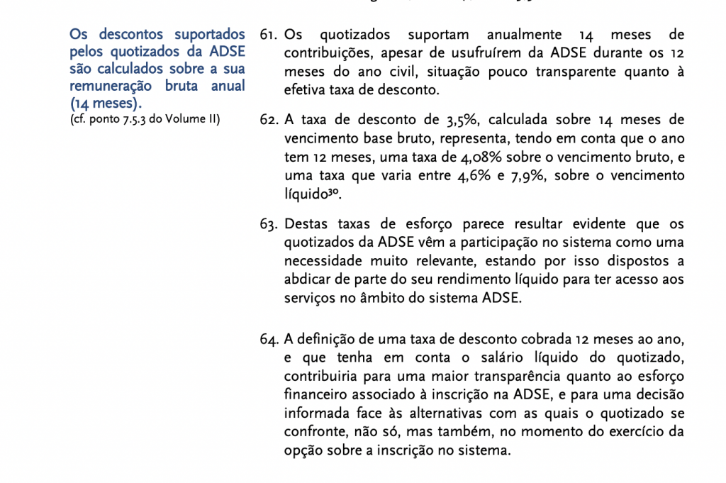 E começamos hoje pela medida mais evidente, na qual o próprio tribunal de contas numa auditoria de 2019 já recomendou que o pagamento das contribuições para a ADSE fosse apenas de 12 meses.