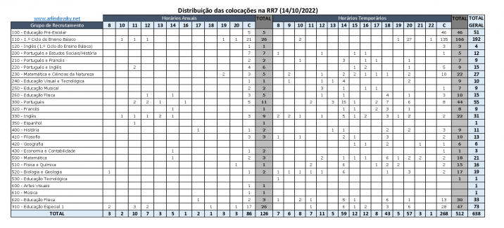 Se filtrarmos os horários e considerarmos apenas os temporários e incompletos, percebemos, nessa região, que eles vão sendo ocupados quase exclusivamente no 1º ciclo e Educação Física, os grupos com mais candidatos por colocar.