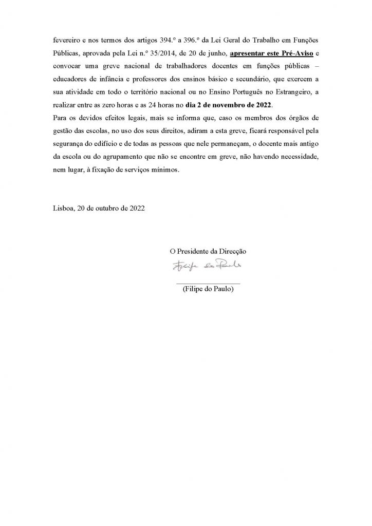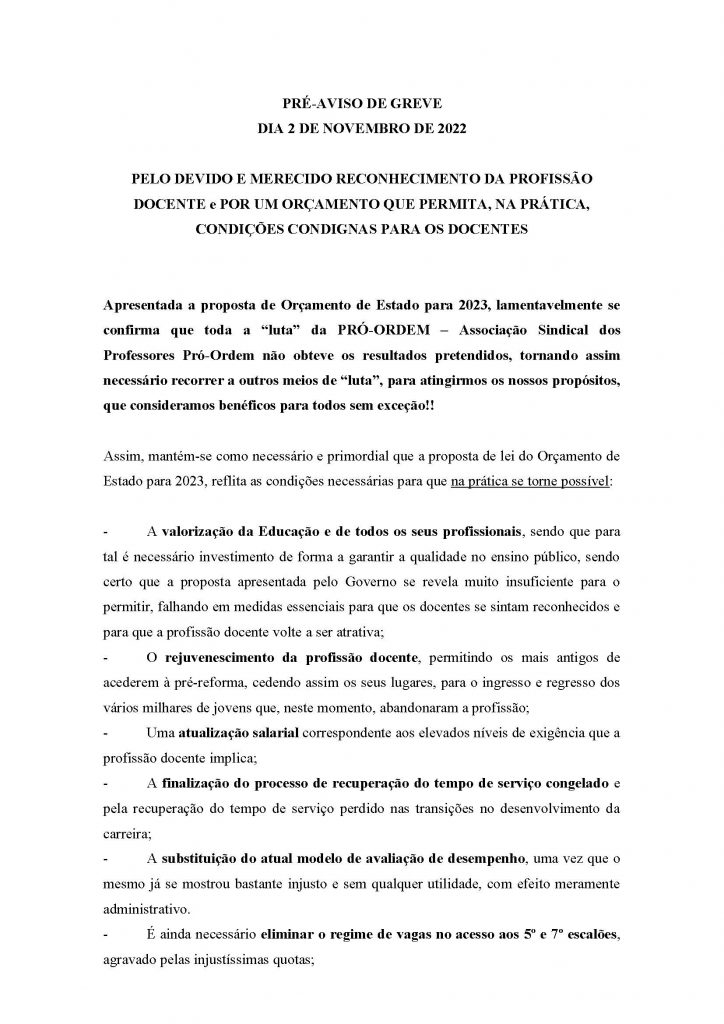 Na sua declaração salientou que a proposta de Orçamento do Estado para 2023 não tem uma única solução para os problemas que afetam a profissão docente. Por outro lado, a recusa do ME em negociar um protocolo que permita fasear a consagração de soluções para a aposentação, contagem do tempo de serviço, combate à precariedade, regularização dos horários de trabalho, aprovação de um regime de avaliação do desempenho que não seja competitivo e se inscreva numa lógica cooperativa e formativa, entre vários aspetos, é sinal de uma total ausência de vontade política para alterar a forma de estar do anterior ministro.