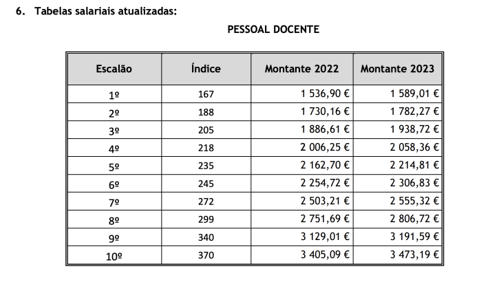 Þ Revisão do valor do índice de topo da carreira docente, tornando-o idêntico ao do topo da carreira técnica superior, com efeitos a partir de 1 de janeiro de 2023;