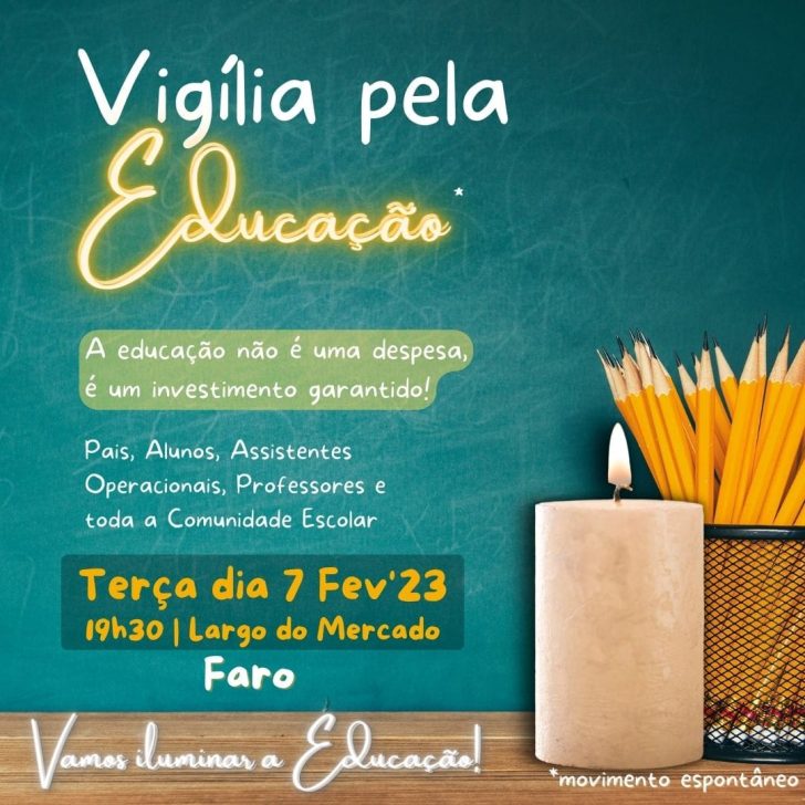 Um movimento espontâneo de professores convida Pais, Alunos, Assistentes Operacionais, Professores e toda a Comunidade Escolar para uma Vigília pela Educação, na próxima terça feira, dia 7 de fevereiro, pelas 19h30, no Largo do Mercado em Faro.