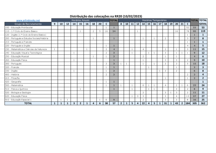 Publicitação das listas definitivas de Colocação, Não Colocação, Retirados e Listas de Colocação Administrativa – 20.ª Reserva de Recrutamento 2022/2023.