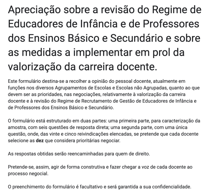 Colegas, ultrapassados os problemas informáticos e recuperadas integralmente as 3000 respostas dadas até ao momento, disponibilizamos novamente o formulário, o qual só deverá ser preenchido por quem não tinha respondido anteriormente.