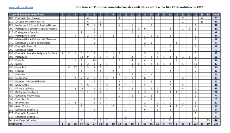 Com data final de candidatura entre o dia 16 e 20 de outubro existem 734 horários em concurso.