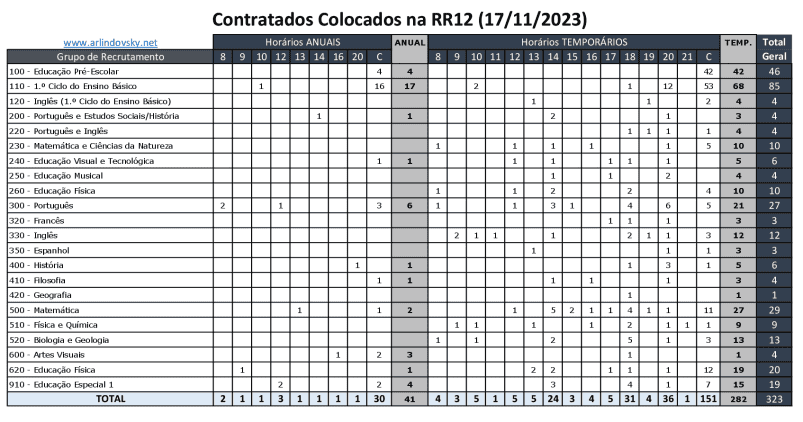 Foram colocados 323 Contratados na Reserva de Recrutamento 12, distribuídos de acordo com a tabela abaixo.