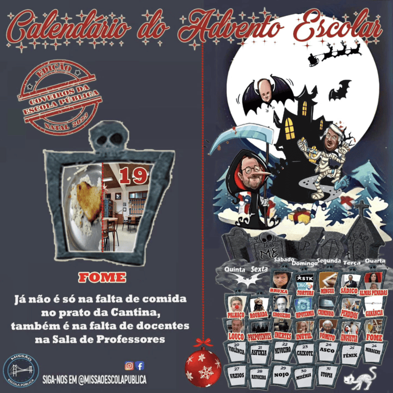 Dia 19 – Fome – já não é só na falta de comida no prato da cantina, também é na falta de docentes na sala dos professores.