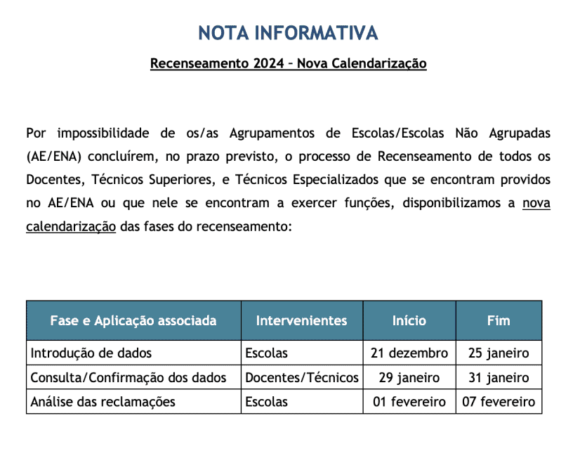 A partir de amanhã e até à próxima quarta-feira, os docentes e os técnicos especializados poderão aceder à plataforma SIGRHE para consultar/confirmar os dados do seu recenseamento.