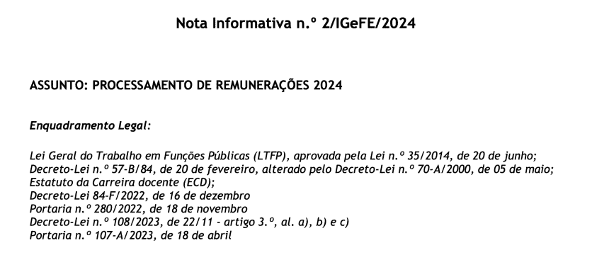 Deixo aqui a Nota Informativa 2 do IGeFE sobre o processamento de remunerações em 2024.