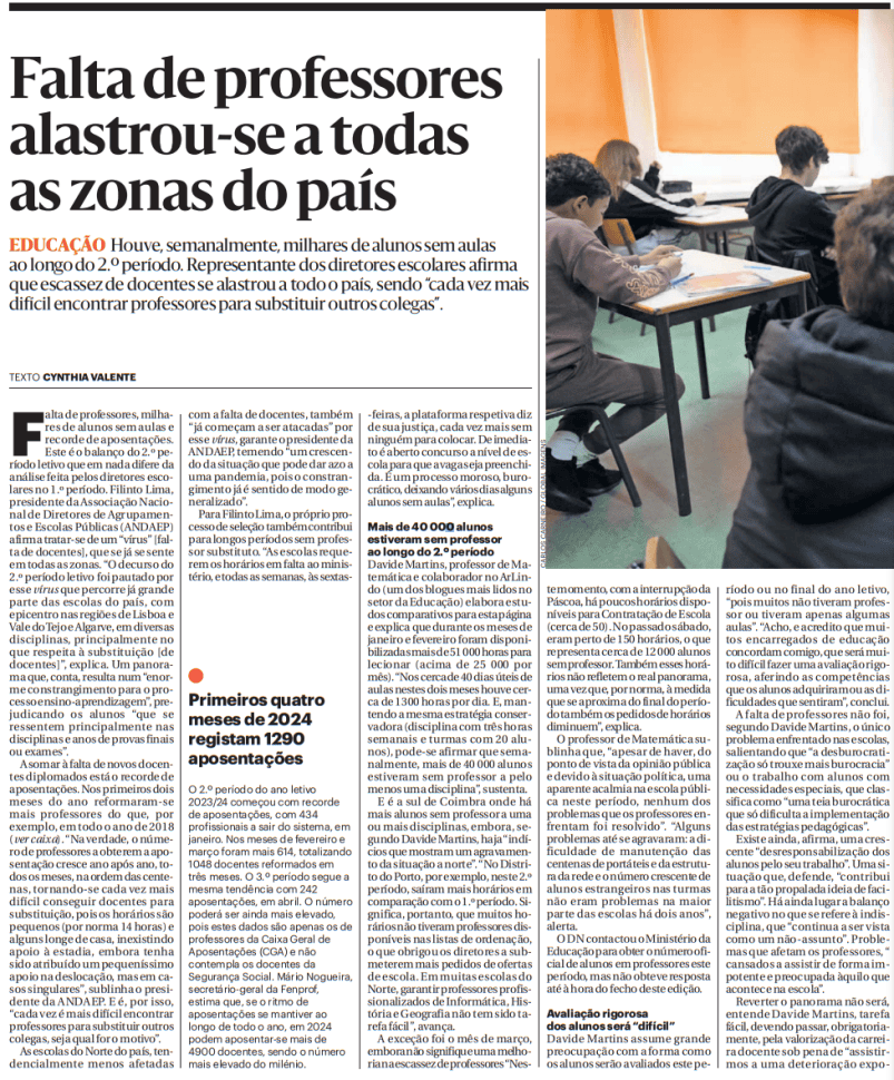 Como compensação, os assistentes digitais da Google e da Microsoft apoiarão o monodocente e o aluno-rei. Dominarão o currículo e avaliarão os intervenientes. Não se usará a IA generativa por desconhecimento na utilização. Os raros acessos serão a modelos gratuitos. A dimensão das turmas será desprezada. A obsessão com exames e provas (como se obter dados, e para se perceber melhor, fosse suficiente para combater as causas das alterações climáticas), ou o seu contrário, atormentarão a organização das escolas. Os dirigentes escolares, organizados em associações de classe, serão autocratas de carreira. Alargarão o emprego partidário e executarão o objectivo fundamental: manter abertas as portas das escolas, custe o que custar. A avaliação de monodocentes continuará doentia. Haverá prémios de desempenho inspirados na meritocracia para massas expostas ao modelo de todos contra todos e a experimentalismos comprovadamente desastrosos da família do cheque-ensino. Os processos disciplinares e as reprovações dos alunos serão em ambiente de burocratização infernal, e sem apoios efectivos para os que “não querem aprender”.
