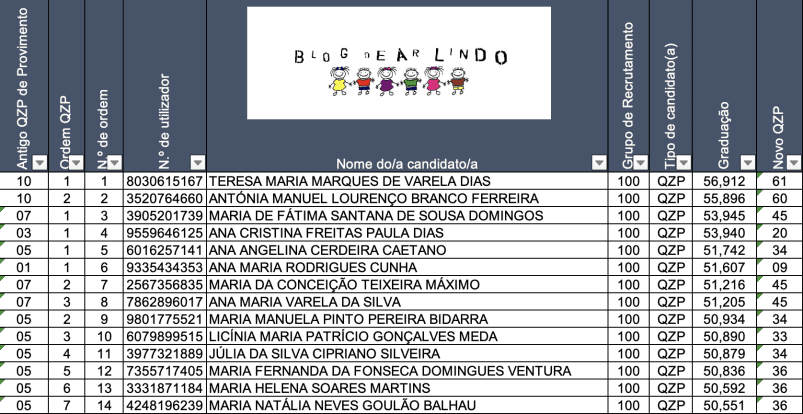 Deixo esta lista em Excel que vos pode ser muito útil com a ordenação dos docentes QZP.
