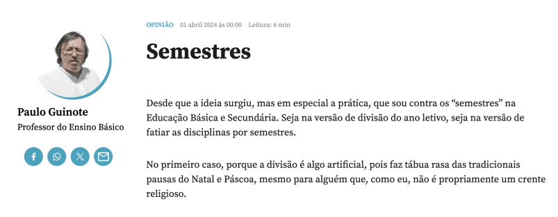 A escola vive numa sistemática convulsão. É preciso interromper este ciclo. Ela sobreviverá. Não temos nem orçamento, nem professores suficientes, mas o grande Carlos do Carmo ensinou-nos que “Por morrer uma andorinha, não acaba a Primavera”.