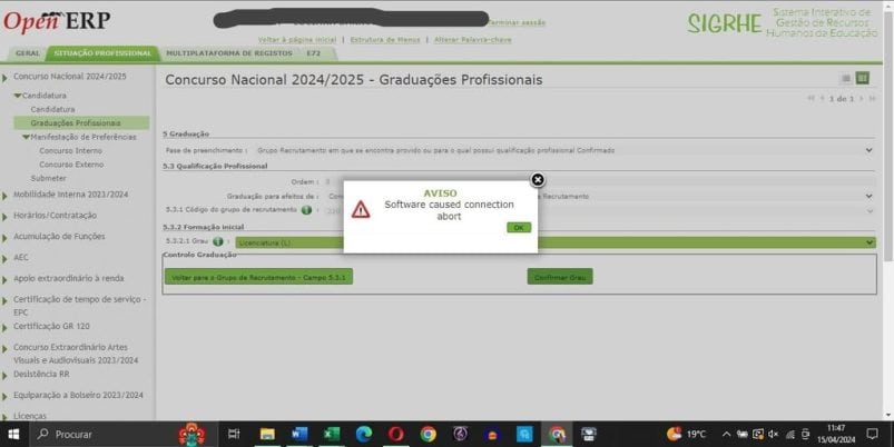 “Software caused connection abort”: há problemas técnicos na plataforma para concurso de professores – que pedem alargamento do prazo