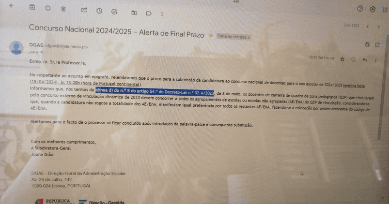 Durante a tarde de hoje a DGAE enviou um lembrete a quem ainda não tinha submetido o concurso (algo de louvar) para o fazerem até às 18:00.