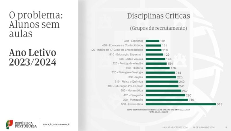 No caso dos grupos de recrutamento as disciplinas mais críticas são Informática, Português, Geografia e Matemática.