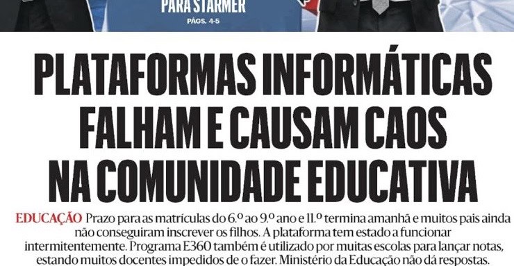 Na semana passada, o ministro da Educação pediu desculpa às famílias devido às falhas no Portal das Matrículas terem levado a que muitos pais ficassem sem conseguir aceder à plataforma de matrículas do 6.º. 9.º e 11.º anos.