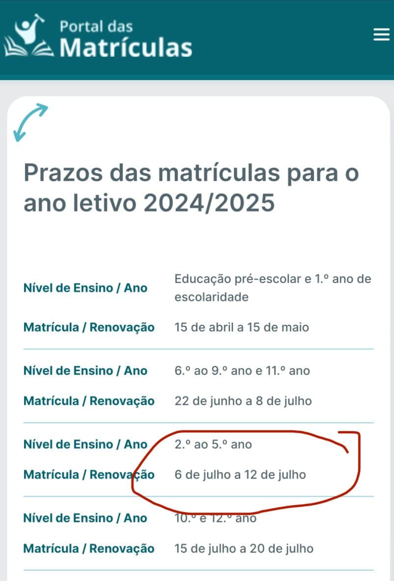 Desta vez para os alunos que se vão matricular ou renovar do 2.º ao 5.º ano.