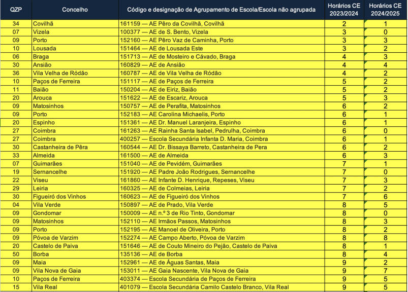 Assim, nesta lista existem escolas que não se verificou a existência de alunos sem aulas durante, pelo menos, 60 dias consecutivos. Mas também não se conhecem os critérios que levaram algumas destas escolas a serem consideradas carenciadas.