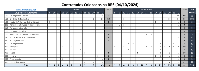 Foram contratados 384 professores na Reserva de Recrutamento 7, distribuídos de acordo com a tabela seguinte.