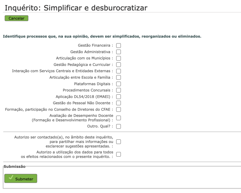 Os vossos contributos e sugestões poderão ser submetidos, até ao próximo dia 9 de julho, através do formulário “Simplificar e Desburocratizar” disponível na plataforma SIGRHE (SIGRHE > Geral > Inquérito: Simplificar e desburocratizar).