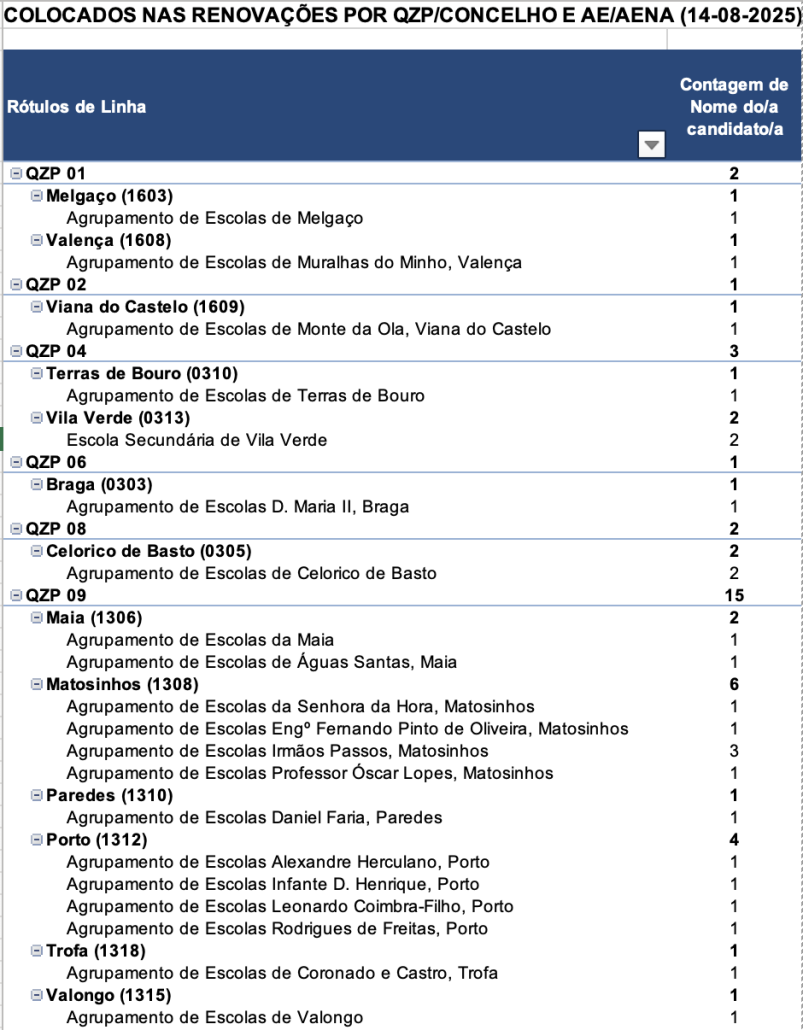 Clicando aqui podem verificar em que QZP, Concelhos e AE/AENA ficaram colocados estes docentes.