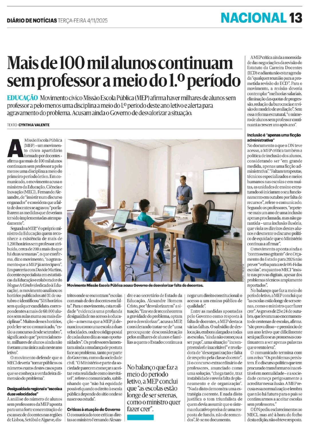 Apesar da garantia da tutela, o ministro Fernando Alexandre reconheceu na discussão do Orçamento do Estado para 2026 que “em quase metade dos agrupamentos ainda faltam docentes”. A 24 de outubro, existiam 1.240 horários por preencher, abrangendo 480 agrupamentos, dos quais 12 tinham mais de dez horários em aberto.