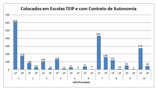 O QZP 1 foi o que teve mais colocações neste tipo de escolas, com 774 colocações, seguindo-se o QZP 7 com 592 colocações.