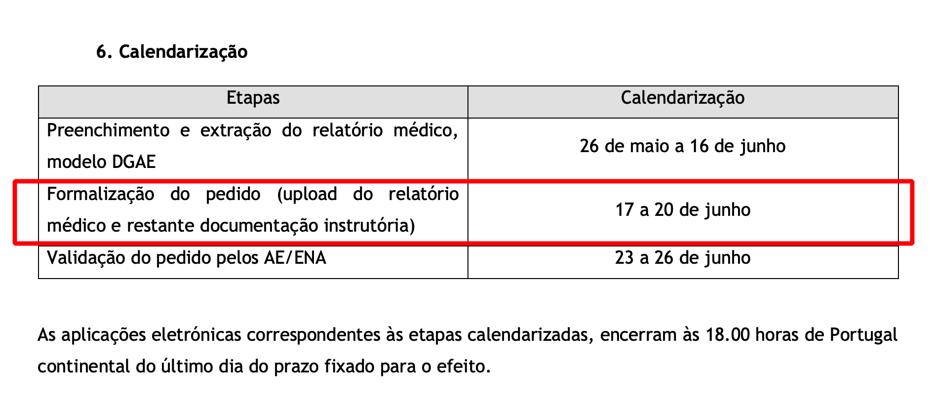 A partir de amanhã e até ao dia 20 de junho (18 horas) os docentes que preencheram e extrairam o Relatório Médico da MPD poderão formalizar o pedido fazendo o upload do relatório médico.