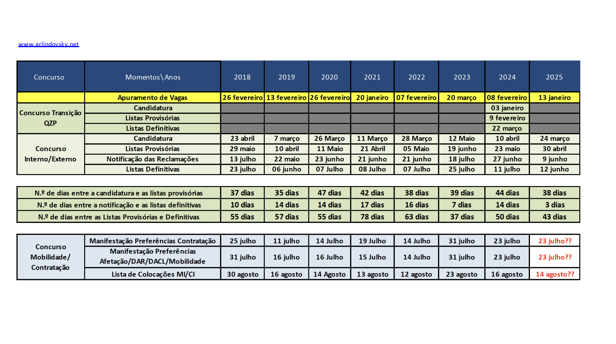 Mas não seria de todo descabido que no início de julho pudesse acontecer a manifestação de preferências para a contratação e o concurso da Mobilidade Interna (para quem quisesse mudar de escola pela segunda e terceira prioridade) e mais para final de julho o concurso dos docentes sem componente letiva na sua escola (1.ª prioridade).