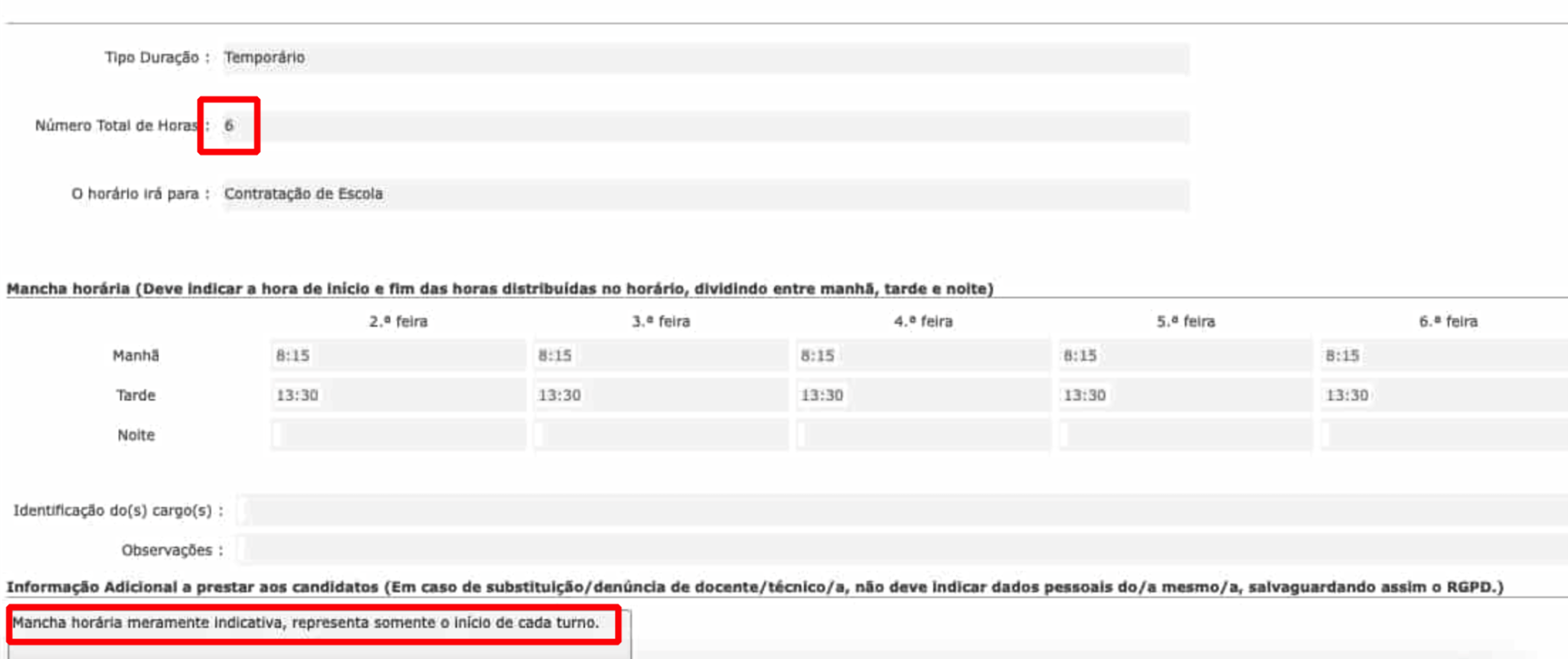 E se uma medida prática do docente conhecer o horário a que concorre é uma excelente medida, já não o é quando para um horário de 6 horas surgem estas indicações.