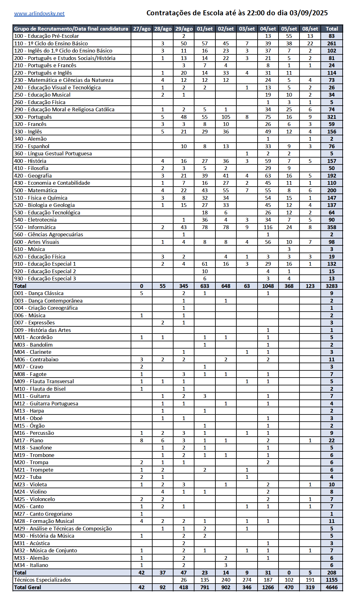 Na Reserva de Recrutamento 2 foram colocados 1460 docentes.