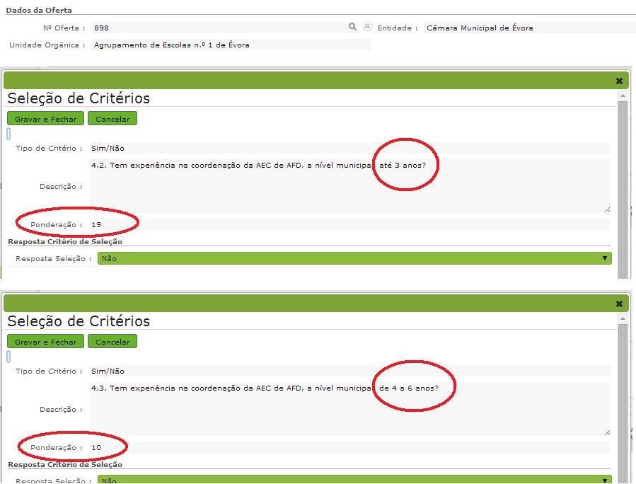 | Numérica | Experiência profissional – tempo de serviço prestado no âmbito das atividades de enriquecimento curricular até 31 de agosto de 2013. | 25 | |