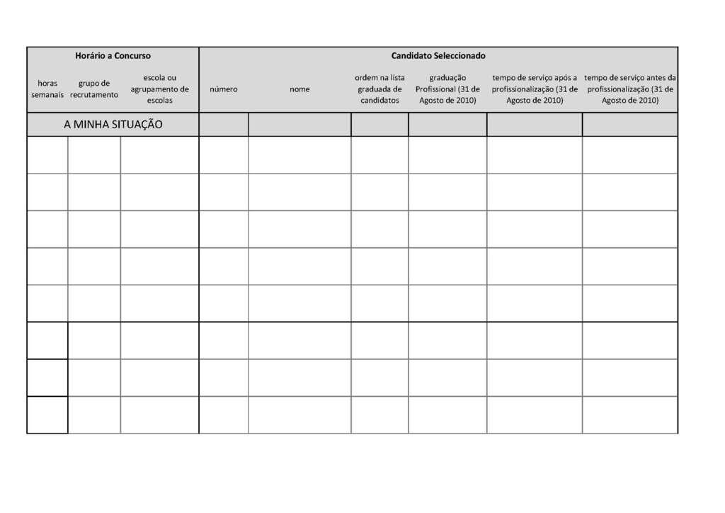 Acrescentei na grelha um espaço para identificar a situação de cada candidato de forma a comparar a graduação profissional com os candidatos selecionados.