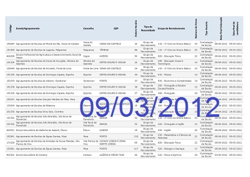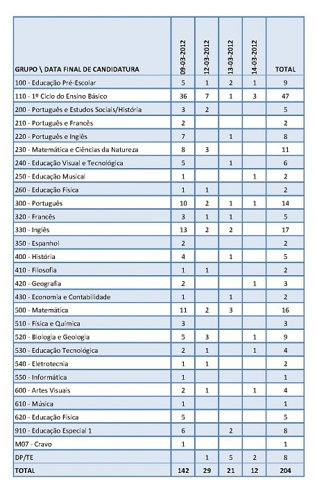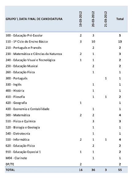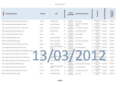 Quando tiver os horários até ao dia 31 de Janeiro farei várias tabelas por grupos de recrutamento e por QZP.