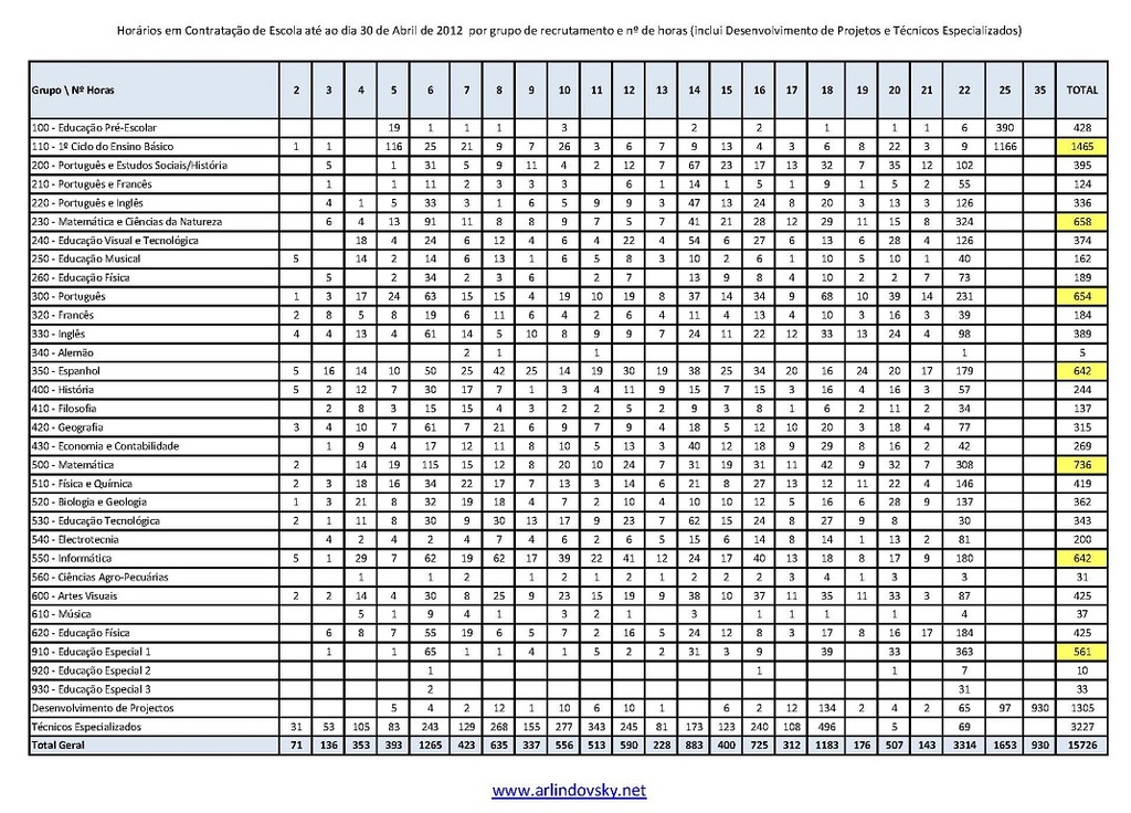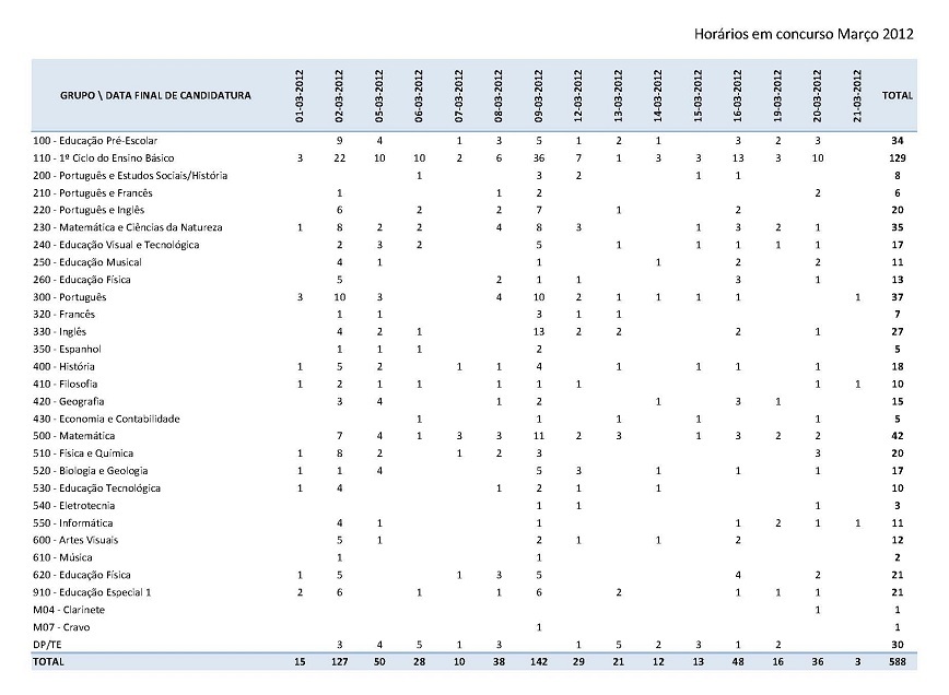 Nos próximos dias acrescento os horários de Abril aos restantes para fazer um novo balanço antes do último mês das contratações de escola do ano 2011/2012.