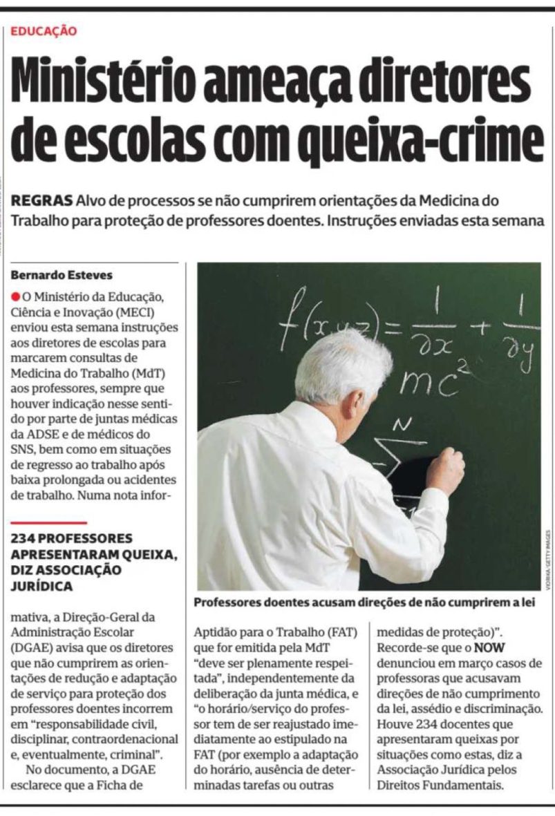 No inicio do ano passado, a Associação Jurídica Pelos Direitos Fundamentais (AJDF) avançou com uma ação popular contra o Ministério da Educação para exigir que os professores tivessem acesso a consultas de medicina do trabalho.