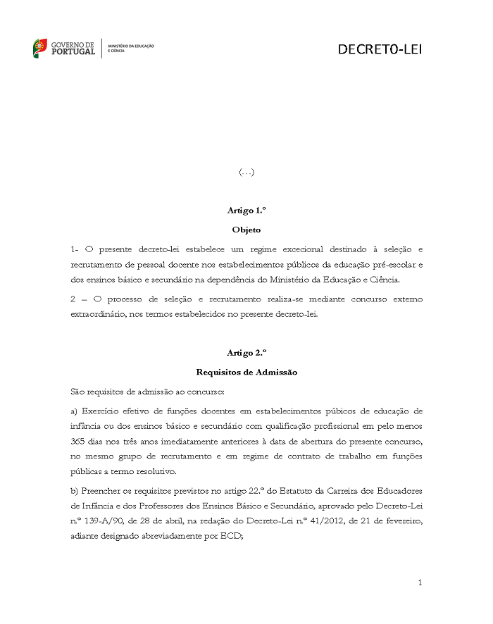 Havendo um novo concurso deste género para ingresso no quadro de docentes contratados, o novo Decreto-Lei devia ter como um dos requisitos obrigatórios a prestação de um determinado tempo de serviço mínimo em funções públicas de forma a dar resposta às sucessivas contratações públicas. E isso não existe.